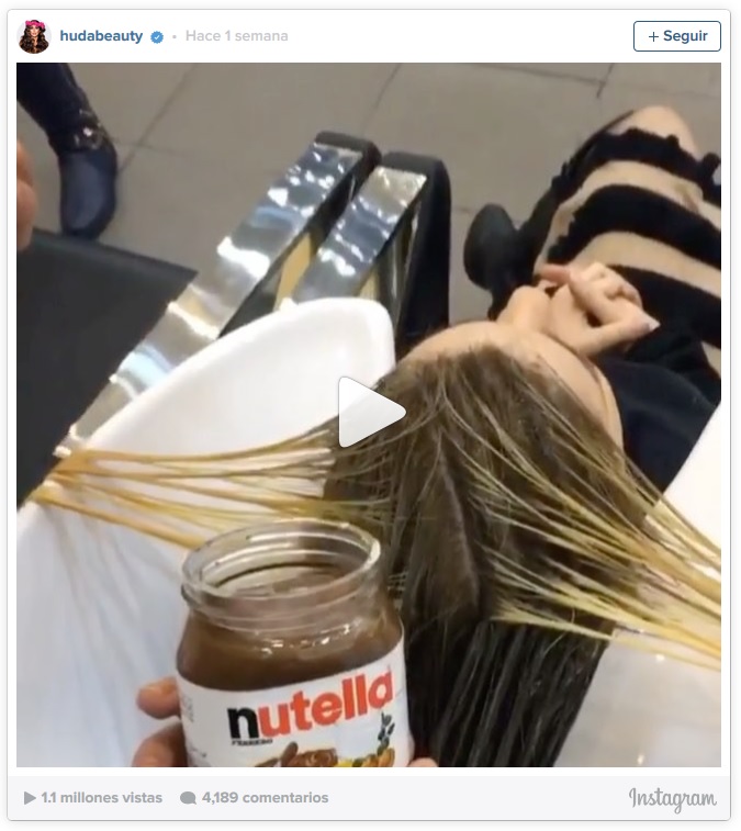 Según el estilista Huda Kattan del salón Abed & Samar situado en Katar, es posible teñirse el pelo con Nutella nada menos. De forma que si tienes un rubio muy claro, puedes oscurecerlo unos tonos (hasta castaño claro) y darle unos reflejos caramelo usando este producto conocido por tod@s.